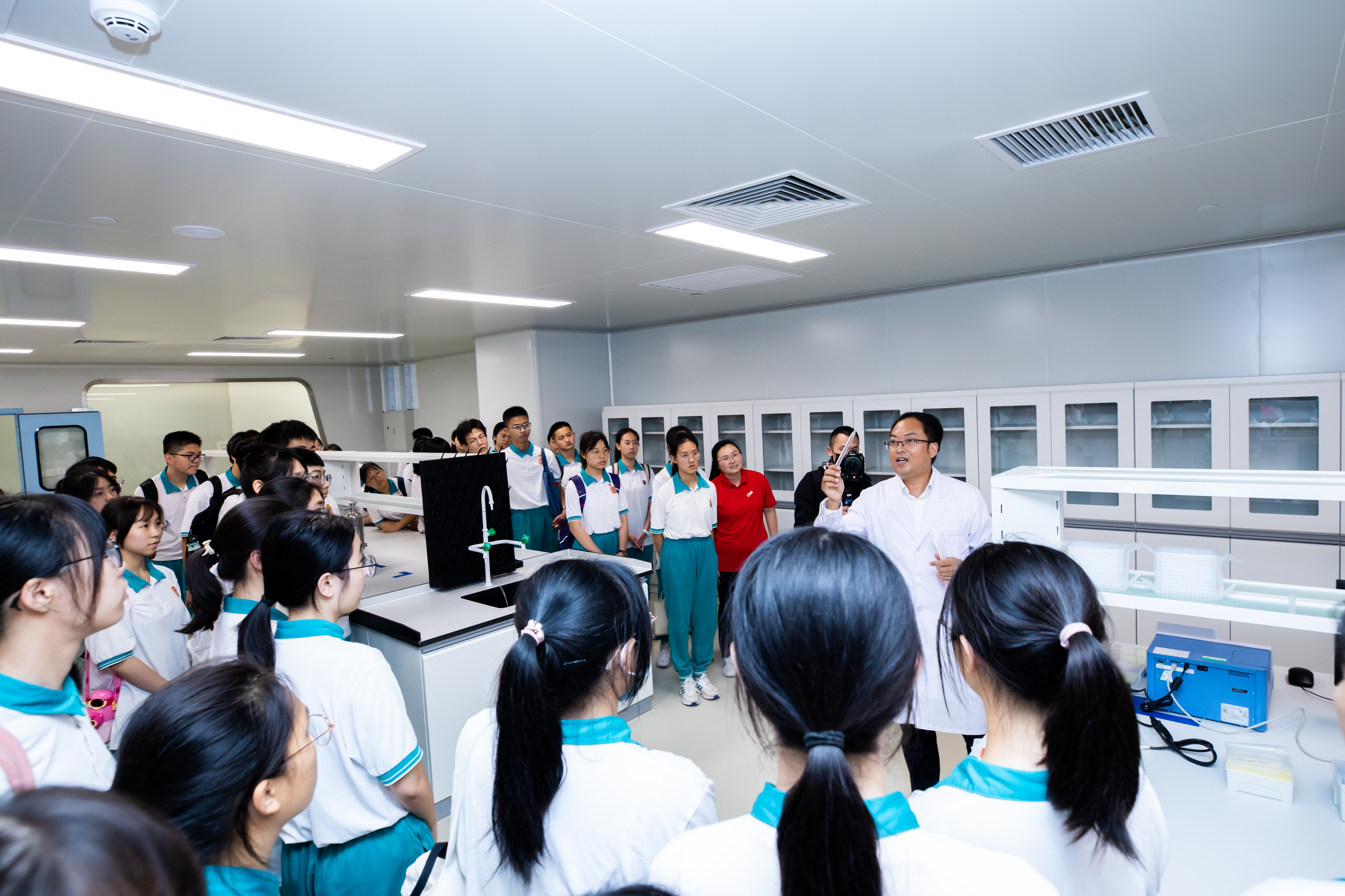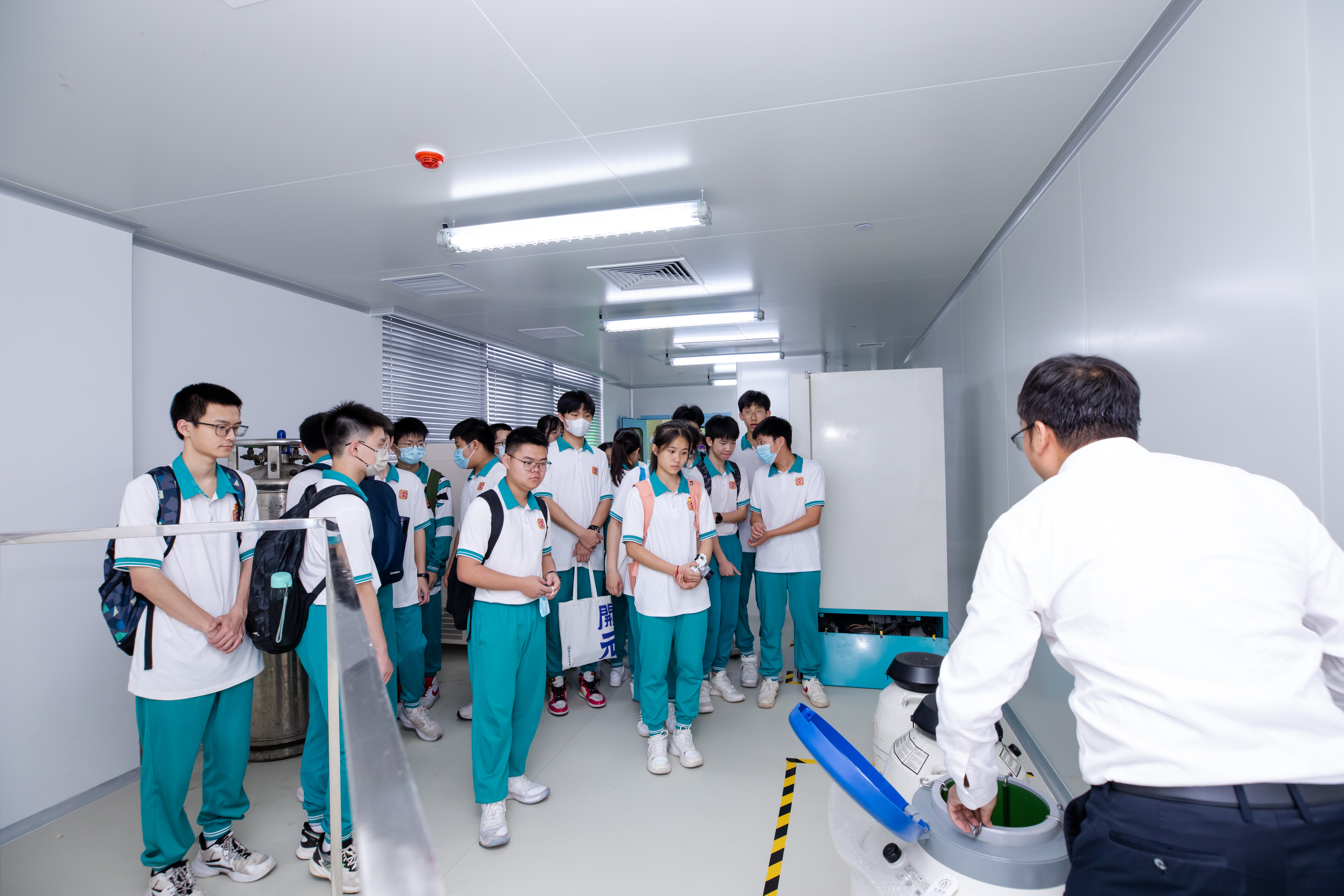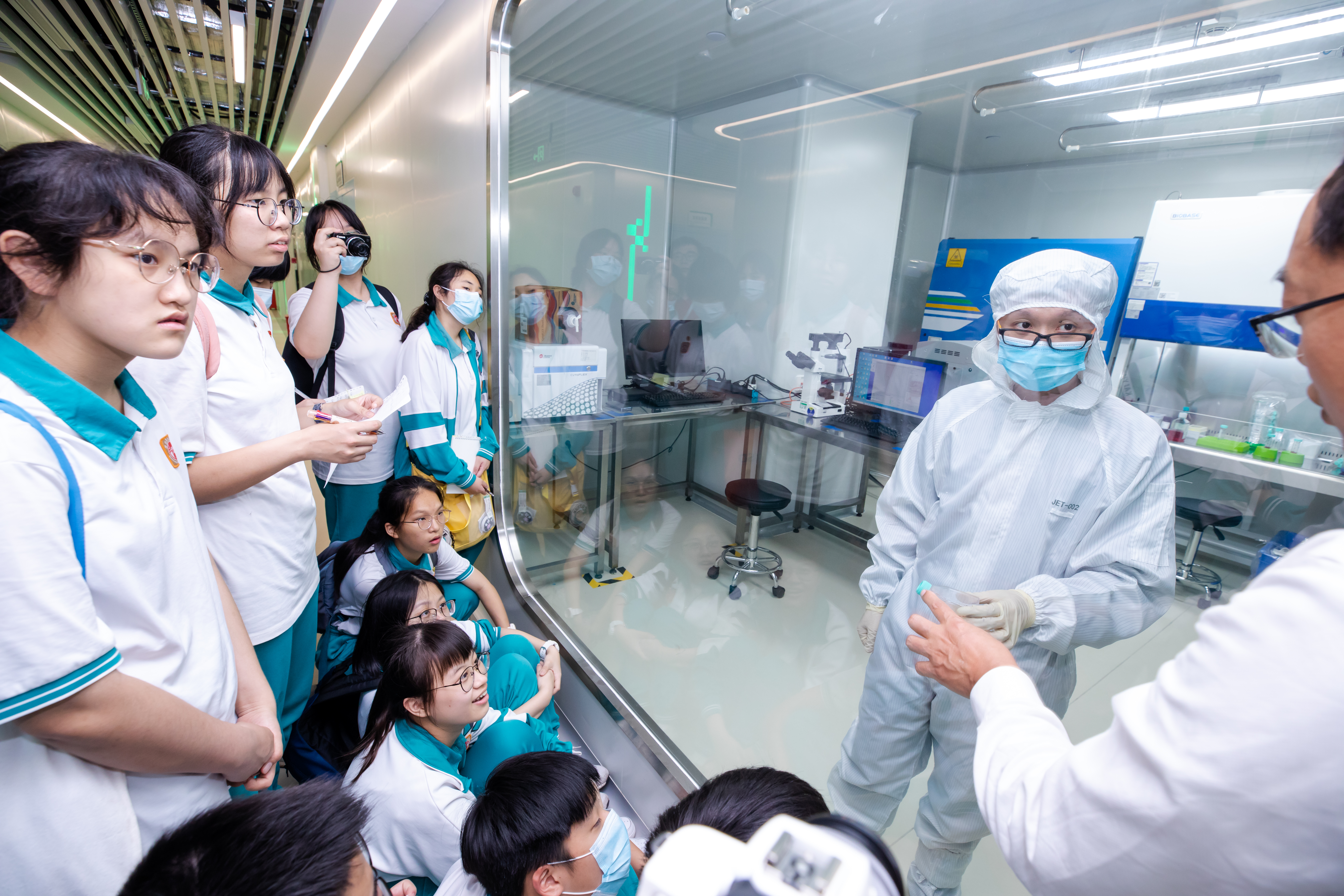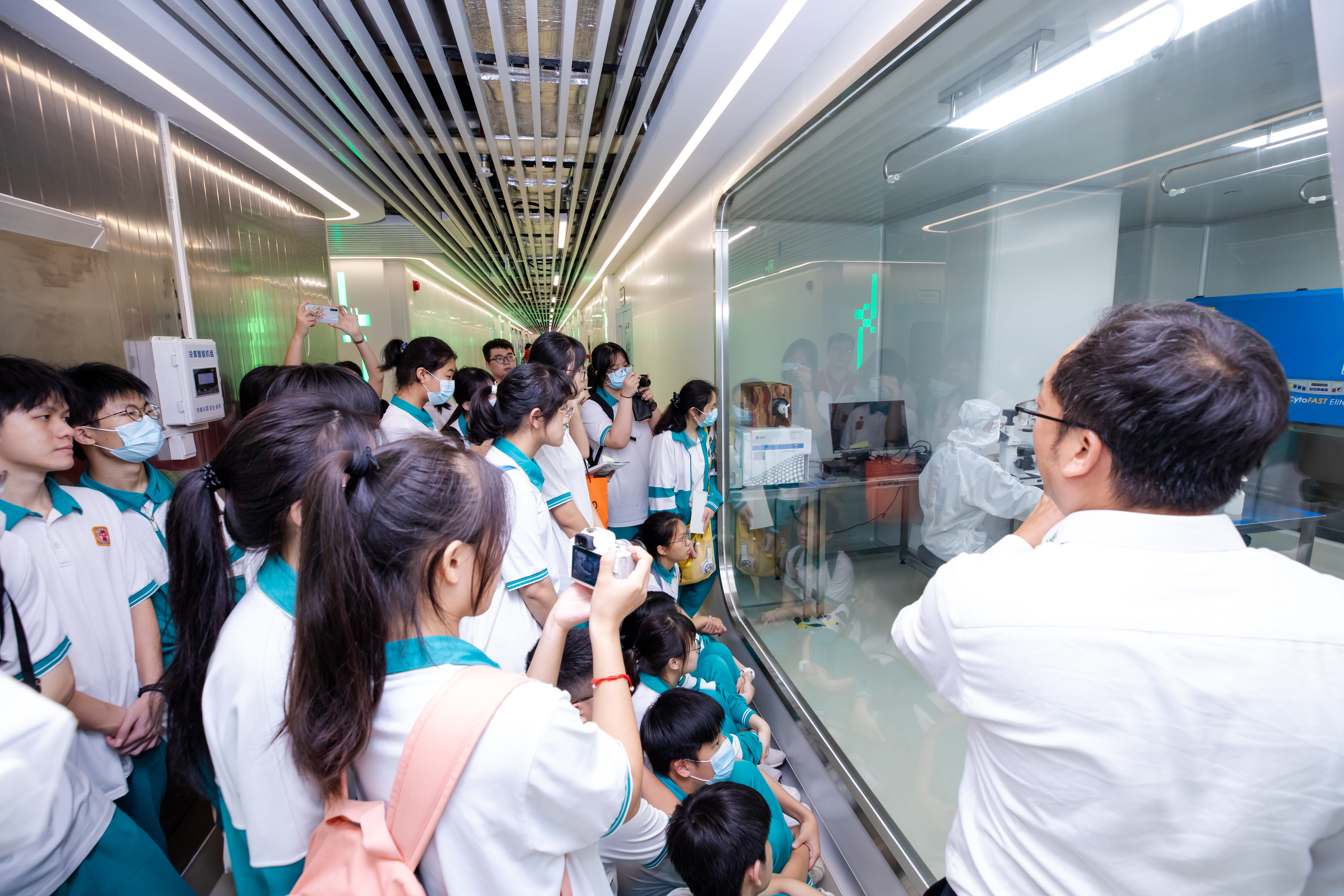 此次研學(xué)之旅,廣州開元學(xué)校師生不僅參觀了潔特生物的沉浸式生命科學(xué)體驗(yàn)廳,還前往生產(chǎn)一線了解潔特生物最先進(jìn)的無人工廠與智能化設(shè)備。同時(shí),他們還來到潔特檢測中心,通過高精密的儀器設(shè)備與細(xì)胞零距離“見面”。