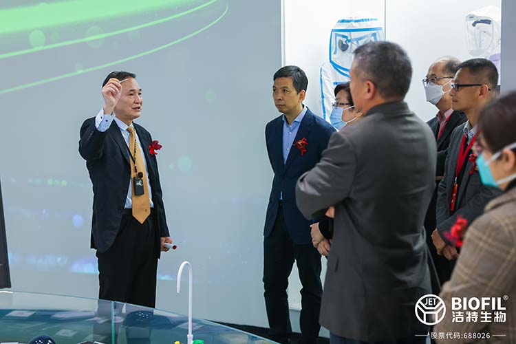 隨后,在潔特生物董事長袁建華,董事、總經(jīng)理YuanYe James的帶領(lǐng)下,嘉賓們分批參觀潔特產(chǎn)業(yè)園,對潔特生物企業(yè)展廳、智能制造生產(chǎn)車間、辦公區(qū)、潔特檢測中心、潔特孵化器樣板間、會議中心等進(jìn)行了詳細(xì)了解。