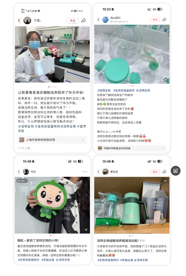 在小紅書關(guān)注“潔特生物”官方賬號;發(fā)布筆記分享您的中獎心得,帶話題 #生物實驗室耗材 #實驗必備 并@潔特生物。