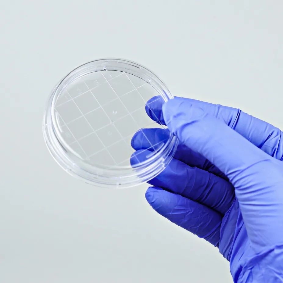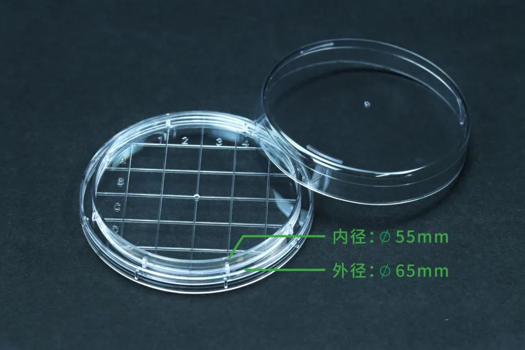 方便菌落計數(shù)與標記皿底帶計數(shù)分格(10×10mm)與數(shù)字標識,便于菌落計數(shù)與標記