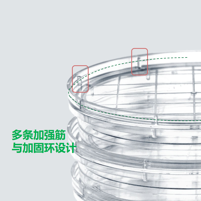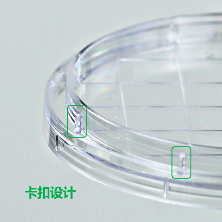 倒置不易脫蓋皿內(nèi)環(huán)卡扣設計,培養(yǎng)皿與皿蓋緊密度高,防止誤開,倒置不易脫落