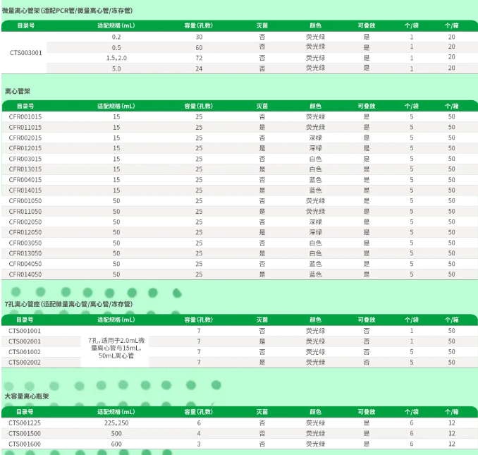 ◆ 15/50mL兩種規(guī)格,均配備25孔位,熒光綠/深綠/藍(lán)/白四種顏色可選