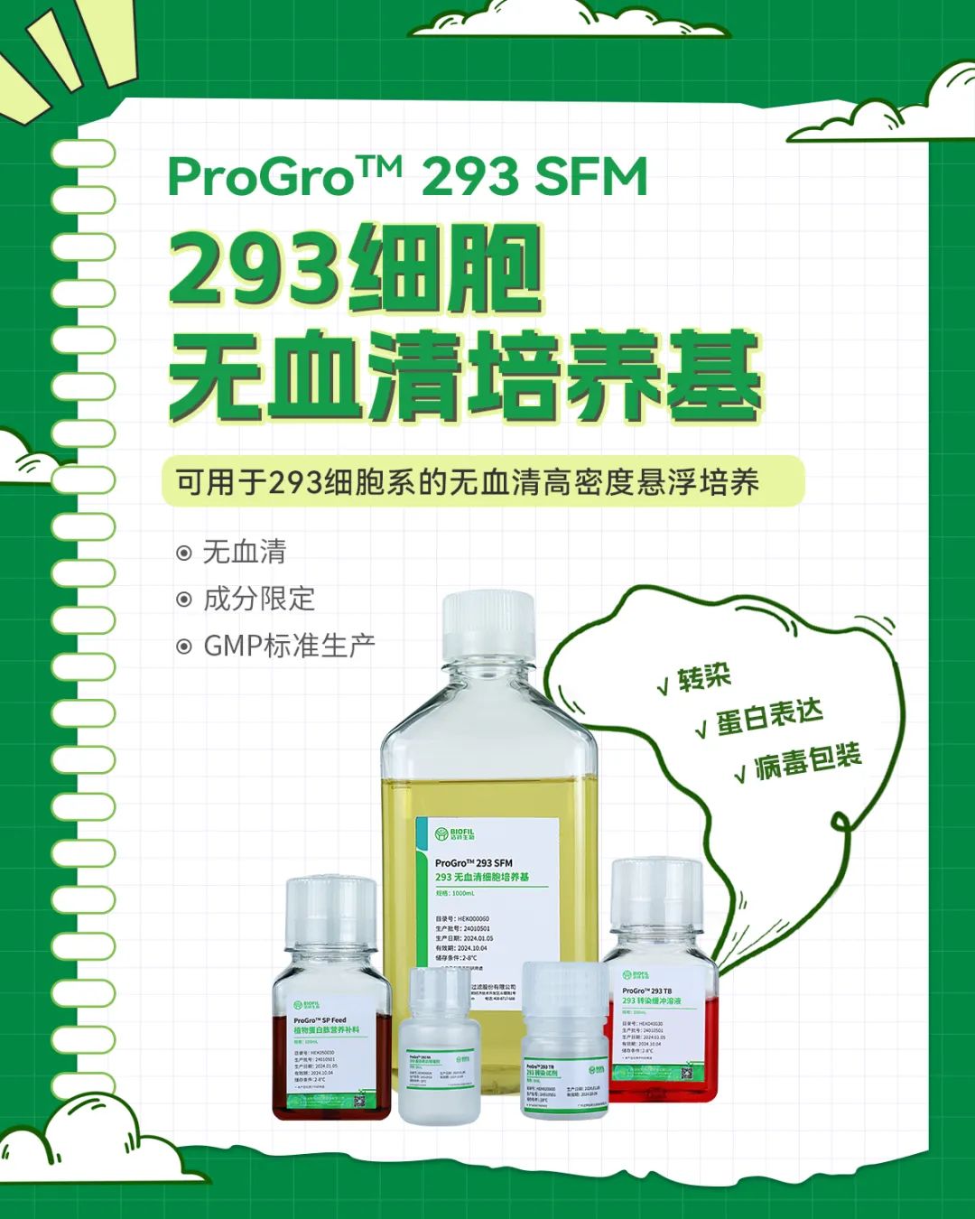 為幫助客戶能夠精準選擇符合需求的產(chǎn)品,潔特生物特提供293細胞無血清培養(yǎng)基正裝免費試用!正裝!正裝!正裝!重要的事說三遍!你的培養(yǎng)基潔特生物為你買單!