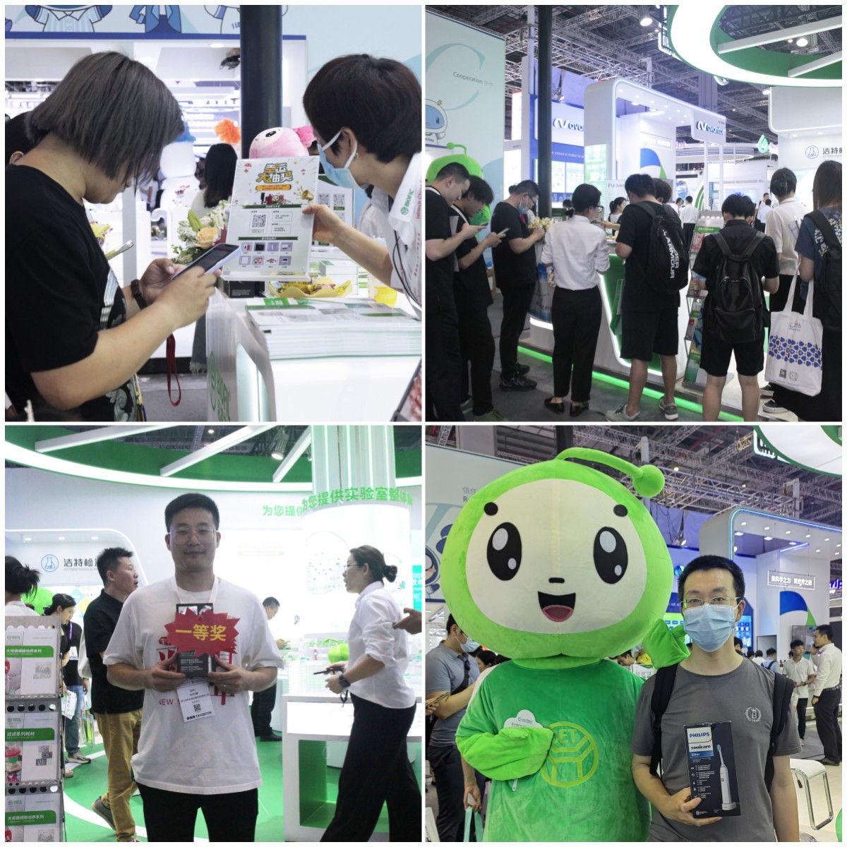 潔特生物以72平特裝展臺(tái)盛裝出席本次展會(huì),展臺(tái)通體VI綠清新亮眼,C位圓形產(chǎn)品展示區(qū)時(shí)尚大氣,在可愛的小潔小特IP公仔點(diǎn)綴下更添一份萌趣。與此同時(shí),更有小特等身人偶與來訪客戶交流互動(dòng),嗨翻全場(chǎng),吸引了眾多海內(nèi)外參展觀眾前來參觀打卡。