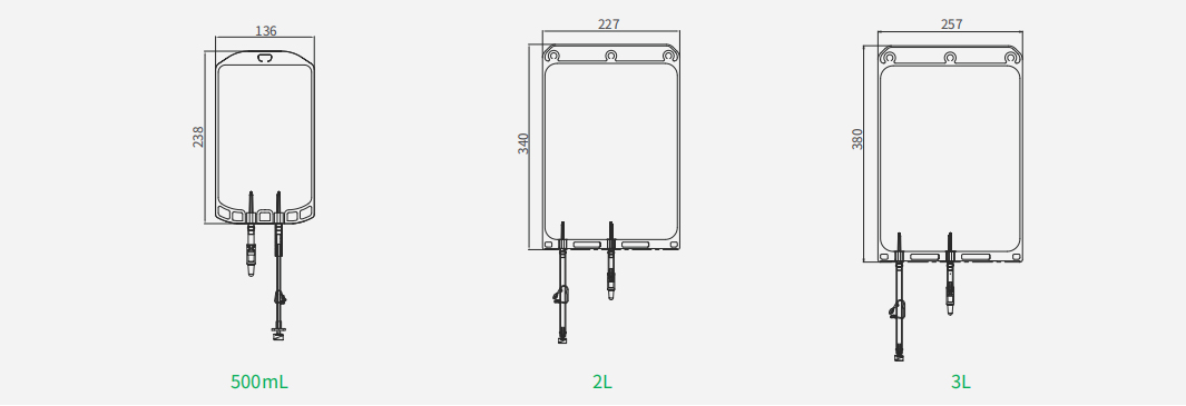 | CSP101500 | 500mL | 250mL | PVC管ID3.5mm,OD5.2mm長(zhǎng)度26cm,母魯爾接頭+堵頭 | PVC管ID4.8mm,OD7.05mm長(zhǎng)度4.5cm,魯爾母接頭+肝素帽+硅膠套 | 是 | 1 | 25 |